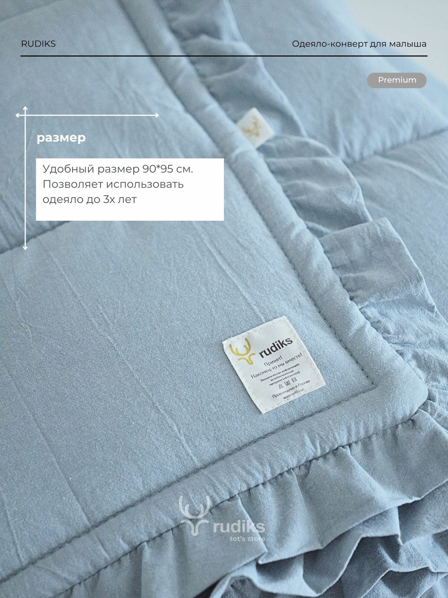 Основные характеристики одеяла-конверта RUDIKS: - Размер 90x95 см; - Подходит для детей от 0 до 3 лет; - Мультифункциональность: можно использовать для выписки, в автомобиле, в путешествиях, в коляске, в кровати, в качестве пледа или коврика для игр; - Легкое преобразование в конверт для новорожденного при помощи ленты (лента продается отдельно); - Современный дизайн и модные расцветки; - Высокое качество материалов и изготовления; - Долгий срок службы; - Можно использовать в любое время года.