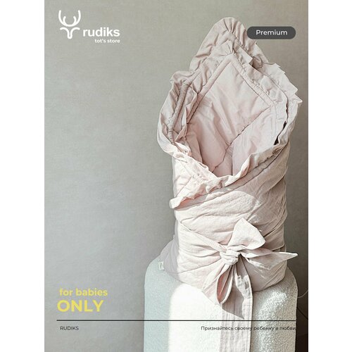 Конверт на выписку для новорожденных RUDIKS можно использовать в любое время года, сочетая с сезонной детской одеждой. Он выполнен из 100%-го хлопка, что обеспечивает комфорт и мягкость при соприкосновении с кожей ребенка.