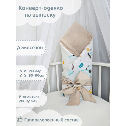 Конверт на выписку для новорожденных. Многофункциональный. Конверт станет вашим помощником в дальнейшем, так как конверт превращается в одеяло, такое одеялко можно использовать как матрасик в коляску, укрывать малыша от непогоды, так же использовать дома в кроватке. Когда ребенок подрастет можно использовать как коврик для игр. Конверт выполнен из 100% хлопка. Утеплитель гипоаллергенный синтепон 200гр на кв. м. В развернутом виде конверт-одеяло имеет размеры 90х90 см. Подходит на сезон Весна-Осень, прохладное лето.