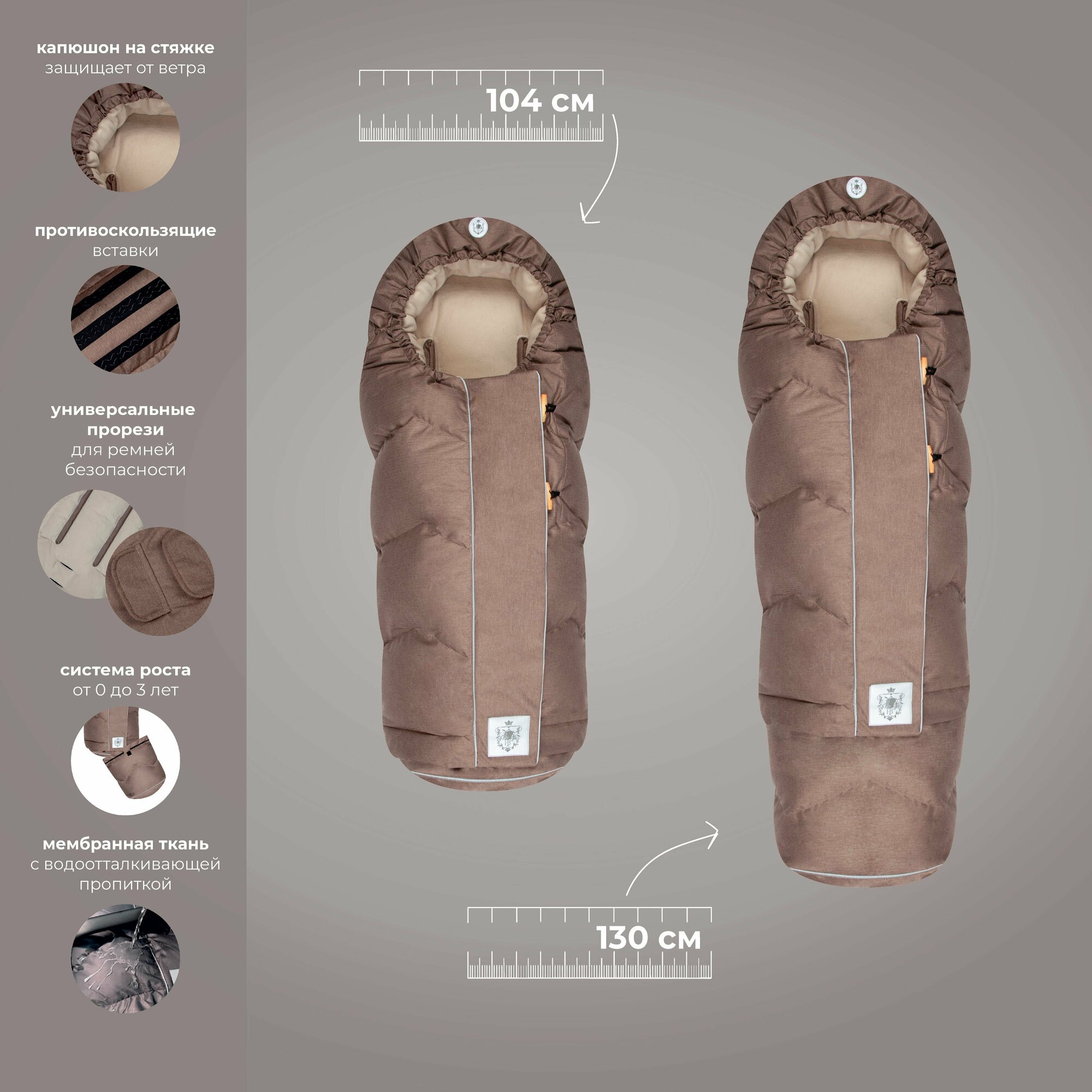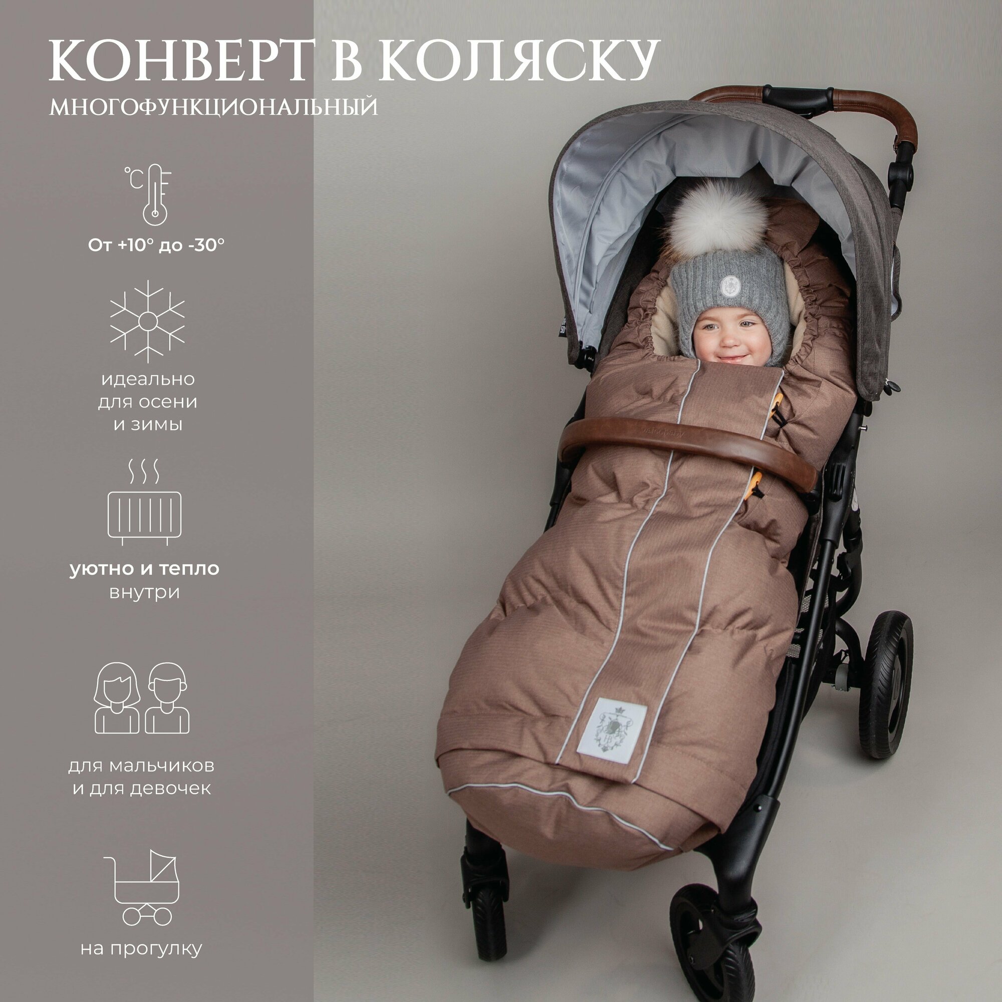 Многофункциональный конверт в коляску с системой роста в самых топовых расцветках: бежевый меланж, серый меланж и черный, подойдет для любой коляски, автокресла или санок. Создан для детей с рождения и до 3-х лет. В комплекте идет удлиненное дно, за счет чего конверт можно использовать до 3 -х лет (длина по спинке без увеличения 103см, с увеличенным дном 125см)