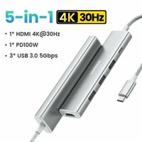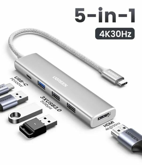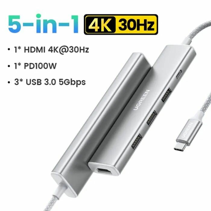 Конвертер многофункциональный UGREEN CM478 (35580) USB-C To HDMI 4K@30Hz+3*USB 3.0 A+PD Power Converter. Цвет: кремовый белый.: сравнение цен, характеристики, фото, актуальное наличие и цены.