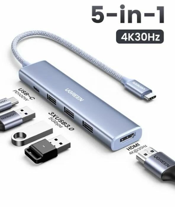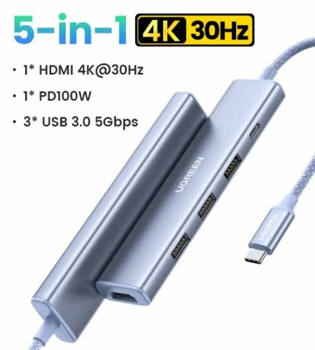 Конвертер многофункциональный UGREEN CM478 (35581) USB-C To HDMI 4K@31Hz+3*USB 3.0 A+PD Power Converter. Цвет: синий.: сравнение цен, характеристики, фото, актуальное наличие и цены.
