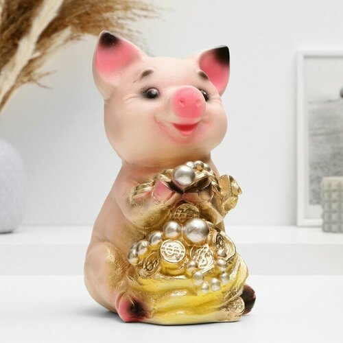 Копилка для денег «Поросёнок большой с мешком», гипс, 17×14×24 см микс
