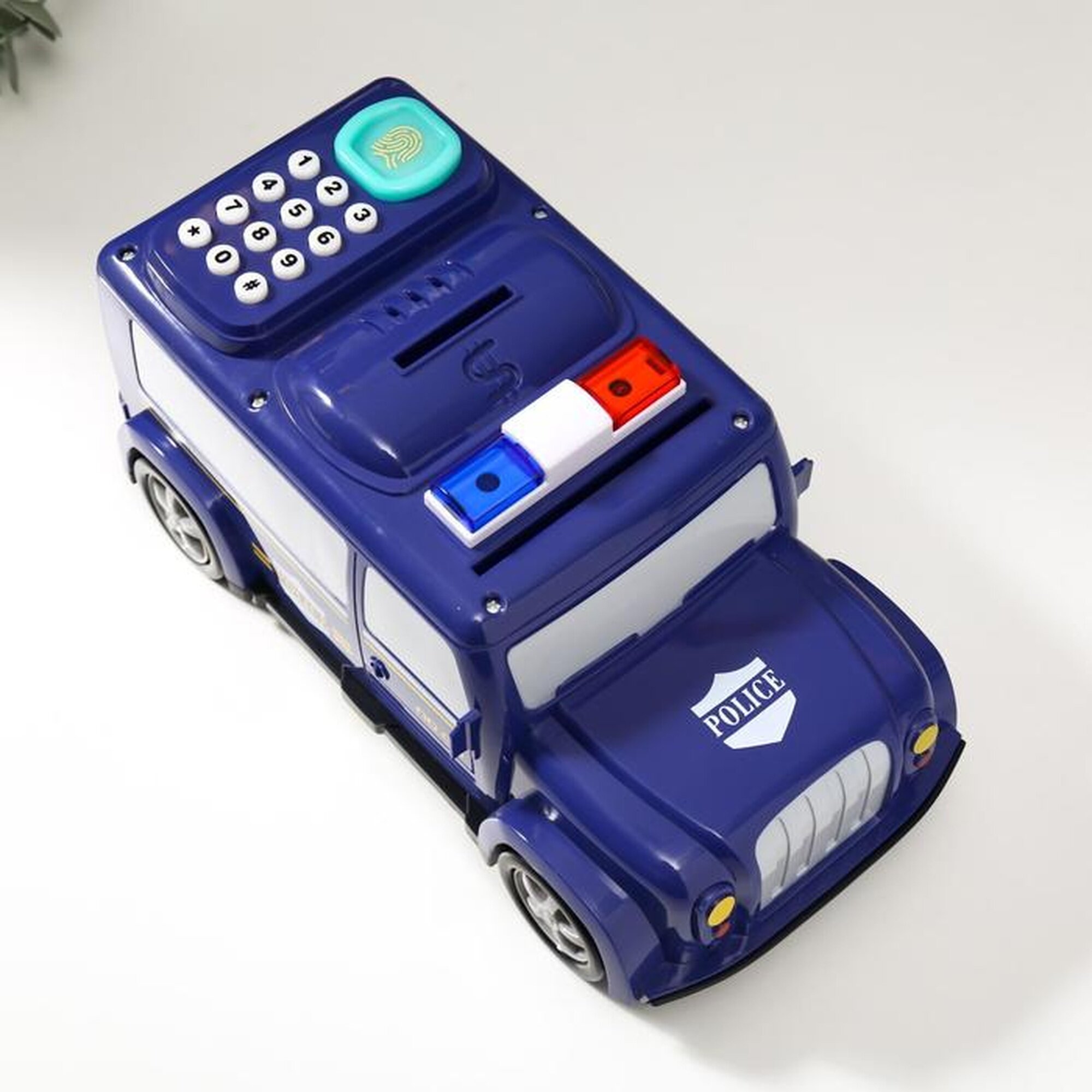 Купить Копилка пластик для монет и купюр «Автомобиль полиция» отпечаток пальца 12х27х13 см с доставкой по всей России.