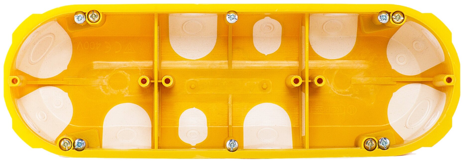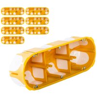 Электромонтажная коробка K3-68*50-D ( KPL 64-50/3LD_NA ) предназначена для монтажа 2 электроустановочных изделий в массив и пустотелые перегородки, ее отличает плотный электротехнический пластик и эластичные кабельные вводы без щелей и перфораций. Глубина 50 мм. Преимущества и особенности: Монтаж в дерево. Защита сгораемого материала от контактной части электроустановочных изделий, полная искрозащита. Для бревна и блокхауса рекомендуем использовать вместе с накладками naBrevno. Монтаж в гипсокартон. Удобная фиксация кабелей и труб через герметичные вводы. Пыль утеплителя/мин. ваты не попадает в помещение через щели подрозетника. Монтаж в каркасных домах. Теплоемкость помещения сохраняется, через герметичные подрозетники не сквозит. Испытание раскаленной петлей: 850°C, не поддерживает горение. Производитель: копос (KOPOS KOLIN), Чехия. (K3-68-50-D7)