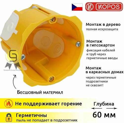 Входные отверстия изготовлены из эластичного материала. Монтаж кабеля проводится путем прорыва мембраны острым предметом с последующим введением кабеля или трубы в образовавшееся отверстие. Коробка снабжена пластмассовыми крепежными лапками. Обеспечивает герметичность ввода кабеля или трубы. Рекомендуется для энергосберегающих или пассивных домов. Монтажные и приборные винты имеют трехшаговую резьбу для быстрой установки, коробка снабжена пластмассовыми крепежными лапками. При монтаже нет необходимости углублять край гипсокартона. Степень защиты IP30 достигается установкой крышки или устройства с равной или более высокой степенью защиты IP30. Бесшовный материал: ДА Глубина: 60 mm Испытание раскаленной петлей: 850 °C Класс реакции на пожар: A1 - F Комплектация: в комплект коробки входят винты для крепления приборов и винты с лапками для установки в гипсокартон Материал: PVC Номинальное напряжение, Вольт: <= 400 V Просверленное отверстие диаметром: 68 mm Самозатухающий: 30 s Среднее, усредненное: 68 mm Термоустойчивость: -5 - 60 °C Тип защиты: IP30 Номинальный ток, А: <= 16 A
