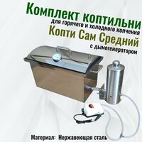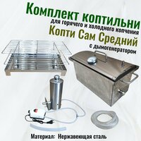 Улучшенная коптильня с усиленным дном ребрами жёсткости. Комплект Копти Сам Средняя для горячего и холодного копчения с дымогенератором.