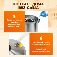 Благодаря конструкции купольная крышка оберегает продукты от выделяющихся в процессе готовки паров и смол. Они просто стекают вниз по стенкам коптильни, а не капают на еду. Гидрозатвор не пропускает дым в помещение, также он важен мужчинам и женщинам, которые будут коптить в квартире. Весь дым будет уходить через специальную трубку, к которой можно присоединить шланг и вывести его в окно или вытяжку. В коптильной камере для дома ингредиенты будут равномерно коптиться со всех сторон. Ручки выполнены из полиамида - максимальная долговечность и безопасность при использовании, а вы не обожжете руки.