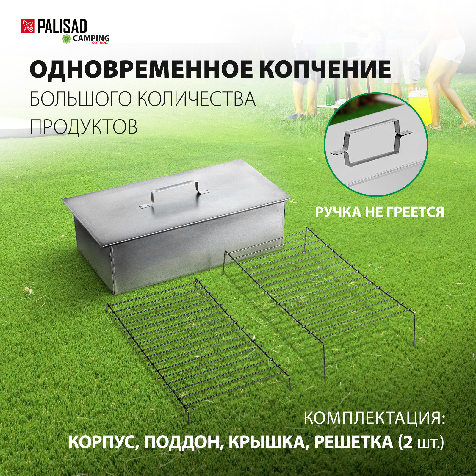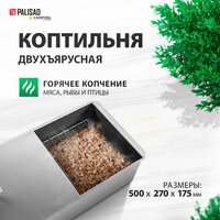 Двухъярусная коптильня Palisad Camping 69541 размером 500 х 270 х 175 мм, с толщиной стенок 0,8 мм, используется для быстрого приготовления мяса, рыбы и птицы методом горячего копчения. Предназначена для работы на открытом воздухе, а значит, ее можно поставить на дачном и придомовом участке, взять с собой на рыбалку или охоту.