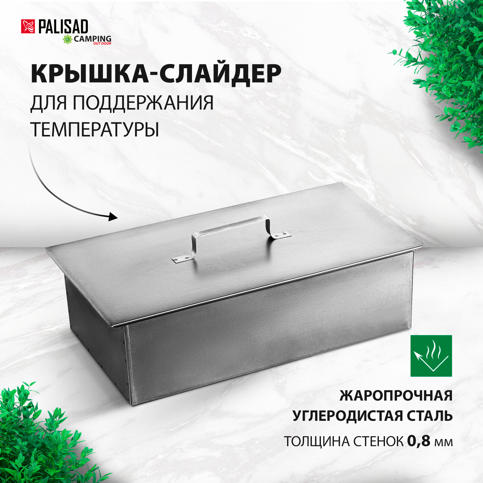 - Идеальные условия приготовления — крышка-слайдер позволяет поддерживать внутри коптильни необходимый температурный режим и сохранять ароматный дым.