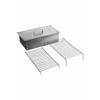 - Удобное использование — ручка не нагревается, поэтому приспособление можно снимать с огня, не опасаясь обжечься, а двухъярусная решетка позволяет за один раз приготовить в 2 раза больше еды, чем в обычной коптильне.