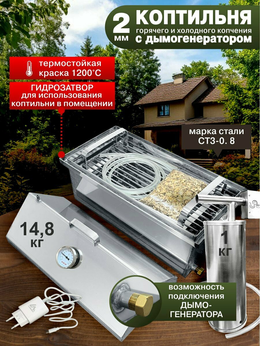 универсальность «2 в 1»: холодное И горячее копчение В комплекте идет мощный дымогенератор! Это значит, что вы можете: