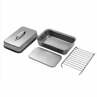 В комплекте решетка для размещения продуктов и поддон для сбора жира.