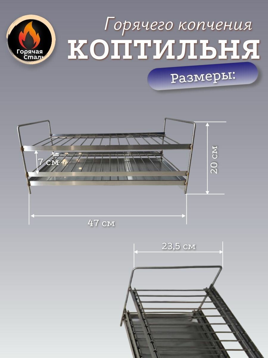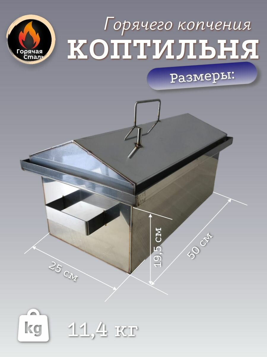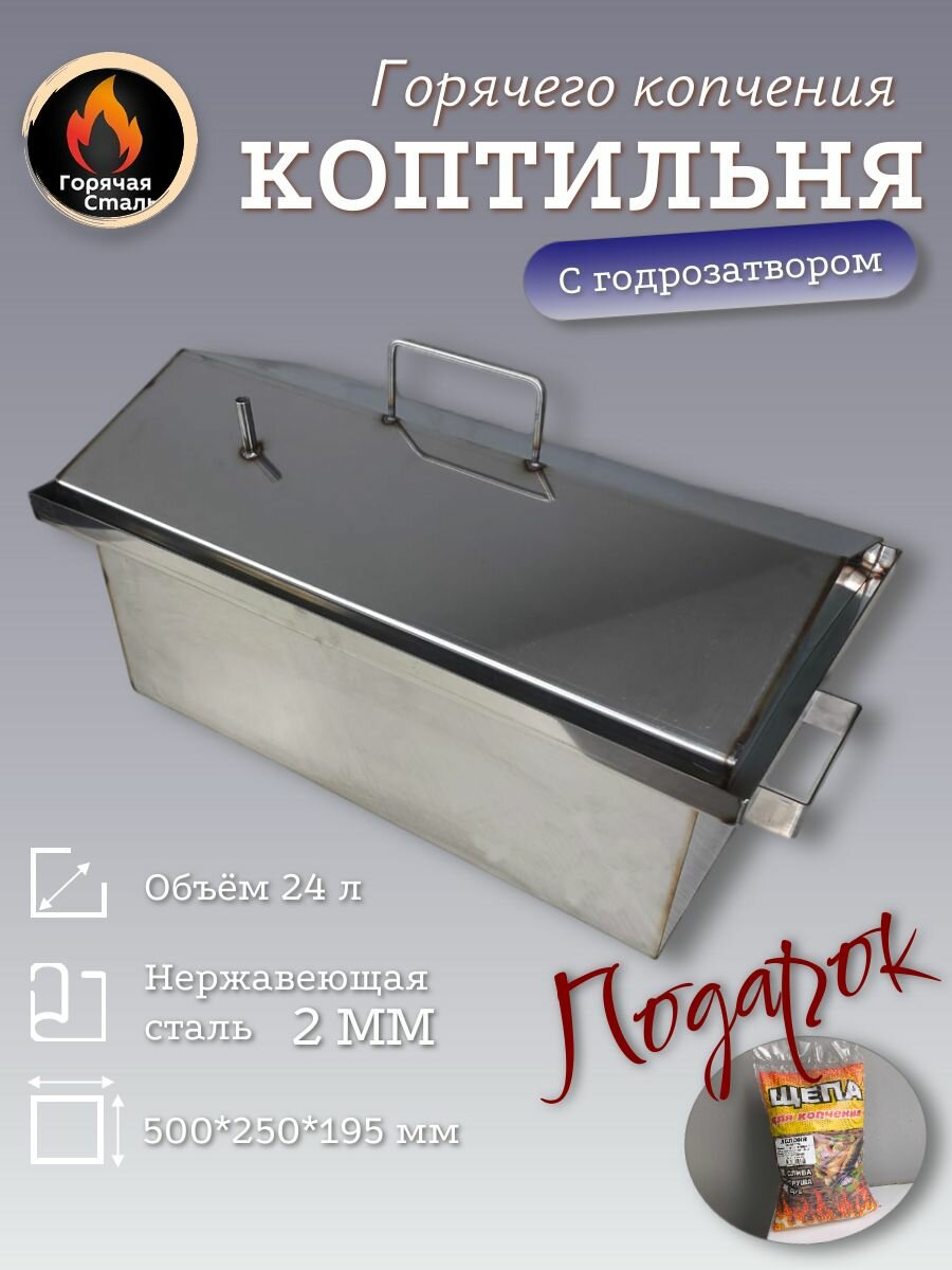 Коптильня горячего копчения с гидрозатвором из нержавеющей стали – двухъярусный вариант с крышкой домиком для полноценного приготовления копченых продуктов. Благодаря продуманной конструкции: рыбу, мясо, сало, курицу и овощи легко приготовить по всем правилам за короткое время. Домашняя коптильня горячего копчения из пищевой нержавеющей стали незаменима на даче, а также в походных условиях и на рыбалке. Отличное приобретение для отдыха и пикника!