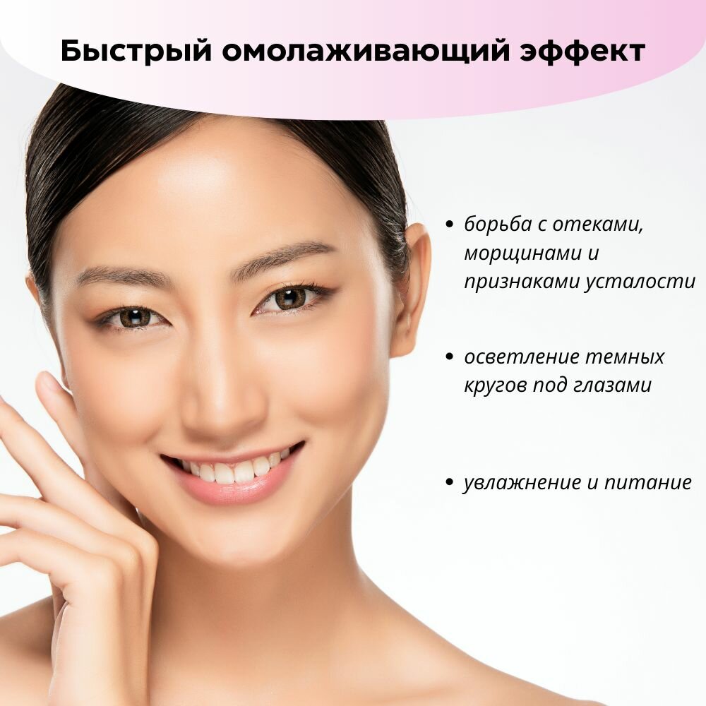 | Эффект | восстановление, лифтинг, омоложение, от кругов под глазами, от морщин, от отеков, отбеливание, повышение упругости, снятие отеков, тонизирование, увлажнение, улучшение цвета |