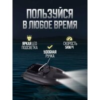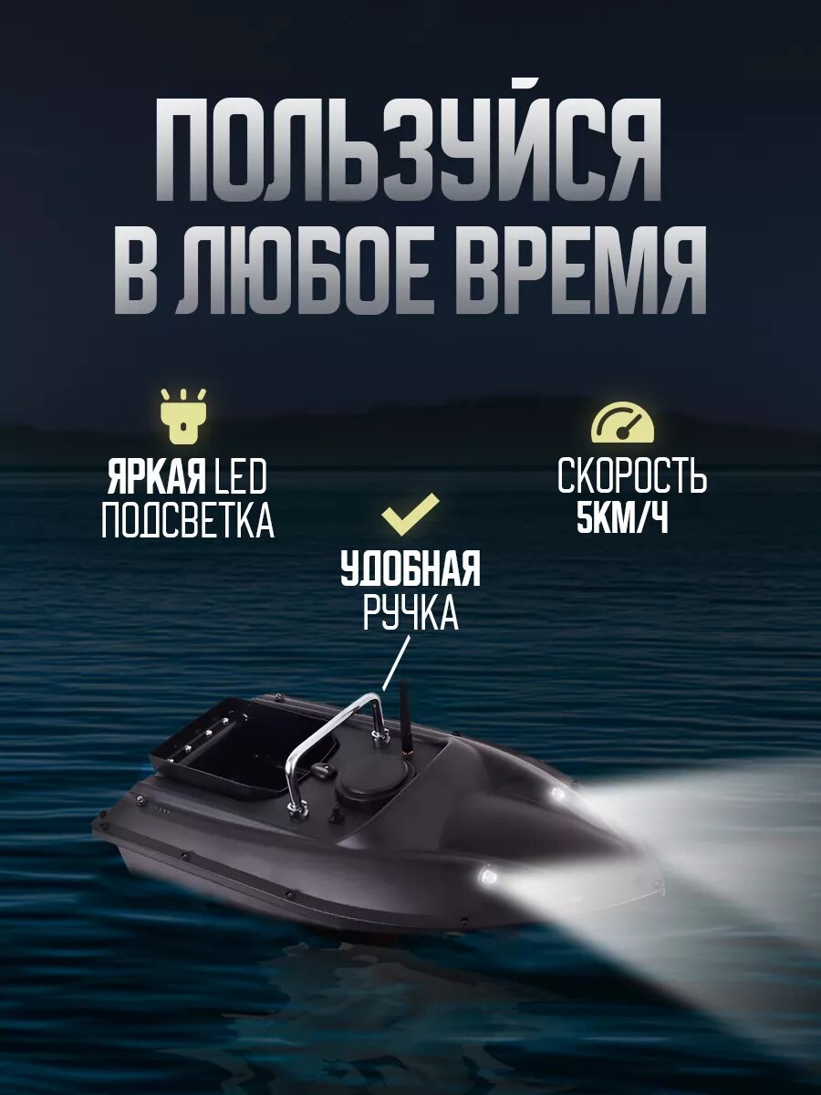 Два мощных моторчика позволяют развивать кораблику быструю скорость до 5,5 км/ч. На моторчиках предусмотрена защита от намотки водорослей на винты. Грузоподъемность бункера до 1 кг. Для заброса можно использовать как бойлы, так и любые комбинации прикормки. Радиопередатчик работает на частоте 2,4 Ггц и способен передавать сигнал на расстоянии до 500 метров, что особенно актуально, если требуется сделать дальний завоз прикормки. Карповый кораблик D13 С118 имеет яркую LED подсветку для рыбалки в ночное время суток.