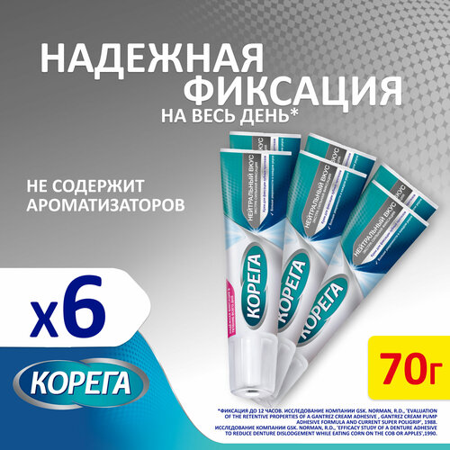 Корега Крем для фиксации зубных протезов, 70 г 6 шт | Нейтральный Вкус до 12 часов: сравнение цен, характеристики, фото, актуальное наличие и цены.
