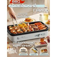 Корейский настольный электрогриль BBQ / Раклетница Цвет белый 43см