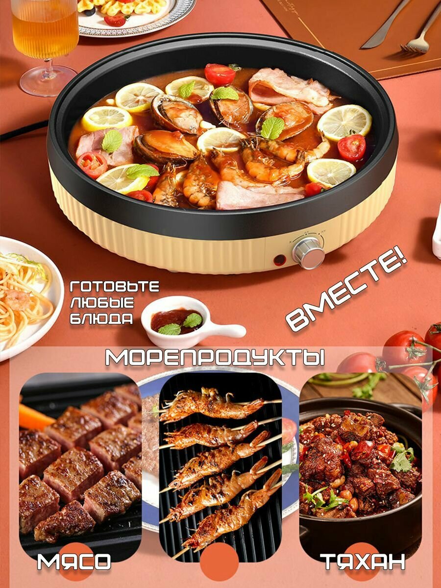 Корейский настольный электрогриль BBQ / Раклетница Цвет белый 43см