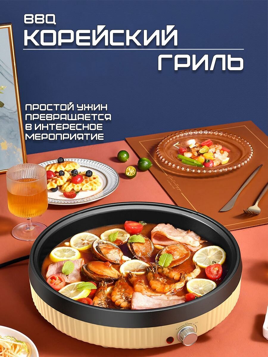 Корейский настольный электрогриль BBQ / Раклетница Цвет Бирюзовый 34см: сравнение цен, характеристики, фото, актуальное наличие и цены.