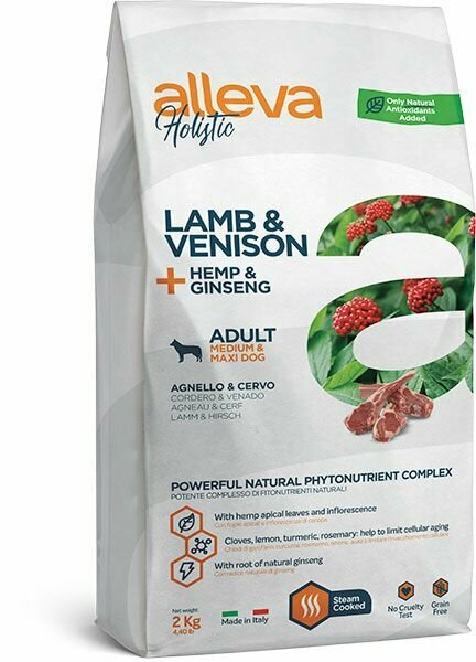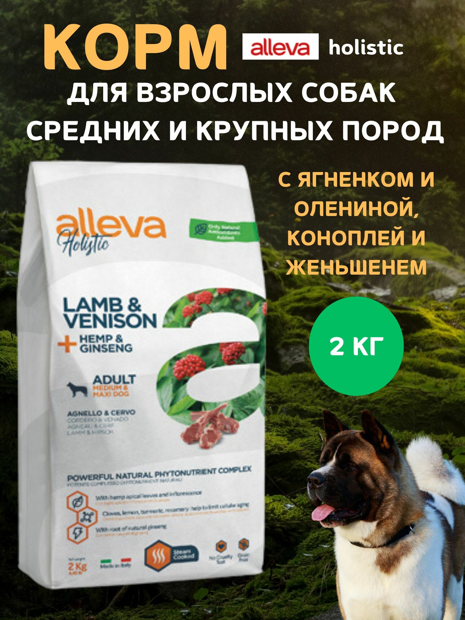 Корм сухой для взрослых собак средних и крупных пород ALLEVA Holistic беззерновой с ягненком и олениной, коноплей и женьшенем, 2 кг: сравнение цен, характеристики, фото, актуальное наличие и цены.