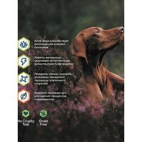 Особенностью данного корма является его холистический состав, что означает полное соответствие потребностям вашего четвероногого друга. Корм не содержит зерновых компонентов, что делает его отличным выбором для собак с чувствительным пищеварением или аллергиями. Дополнительные ингредиенты, такие как конопля и женьшень, обогащают рацион собаки полезными веществами, поддерживающими иммунитет и общий тонус организма.