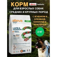 Купить Корм сухой для взрослых собак средних и крупных пород ALLEVA Holistic беззерновой с ягненком и олениной, коноплей и женьшенем, 2 кг с доставкой по всей России.