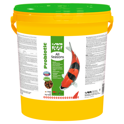 Состав: рыбная мука (37,0%), кукурузный крахмал (31,0%), пшеничная мука (10,0%), пшеничная клейковина (8,0%), пивные дрожжи (4,0%), пшеничные зародыши (3,0%), казеинат кальция (2,0%), спирулина (2,0%), рыбий жир (в т.ч. 49% Омега жирных кислот) (1,0%), маннанолигосахариды (0,4%), криль (0,3%), гаммарус (0,2%), зеленые мидии (0,2%), крапива (0,1%), люцерна (0,1%), растительное сырье (0,1%), водоросль гематококкус (0,1%), петрушка (0,1%), морские водоросли (0,1%), паприка (0,1%), шпинат (0,1%), чеснок (0,05%), морковь (0,05%).