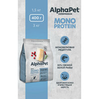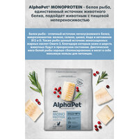 Здоровый и активный питомец – главная задача каждого хозяина. Команда AlphaPet® создает и производит полезные корма высшей категории качества Holistiс, давая возможность каждому владельцу быть уверенным в правильном выборе кормления для своего животного. AlphaPet® MONOPROTEIN на основе белой рыбы - благодаря единственному источнику животного белка, подойдет животным с пищевой непереносимостью. Белая рыба - отличный источник легкоусвояемого белка, микроэлементов: железа, селена, цинка, йода и витаминов B12 и D. Также рыба ценный источник ненасыщенных жирных кислот Омега 3, благодаря которым кожа и шерсть животных будут в прекрасном состоянии. Диетическое мясо белой рыбы хорошо сбалансированно и несет в себе максимум пользы для питомцев. Приготовленно по инновационной технологии из свежей белой рыбы и с содержанием большого процента животного белка! Линейка кормов AlphaPet® MONOPROTEIN: Свежая белая рыба ингредиент №1 в составе Большой процент животного белка Формула "MONOPROTEIN" - снижает риск возникновения аллергии Уникальный комплекс AlphaPetBio Ингредиенты качества Human Graid Низкозерновая рецептура Поедаемость и вкусовая привлекательность проверены в собственном центре AlphaPet Без ГМО искусственных красителей, ароматизаторов и консервантов Не содержит пшеницу, кукурузу и глютен