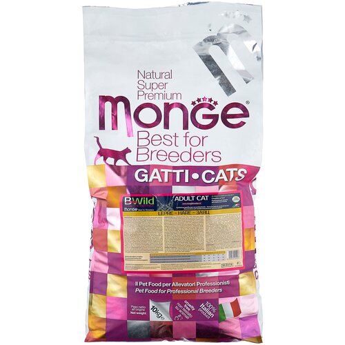 Monge (Монж) Cat PFB BWild LOW GRAIN (холистик) полнорационный низкозерновой корм из мяса зайца для взрослых кошек и котов 10 кг.