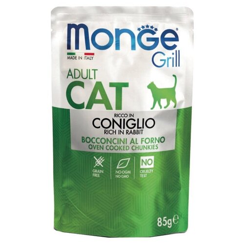 Пауч Monge Cat Grill Pouch Итальянский кролик для взрослых кошек 85 г 14 шт. - полнорационный консервированный корм, кусочки в желе из итальянского кролика для взрослых кошек. Паучи Monge Grill для кошек беззерновые, сделаны из отборных ингредиентов высокого качества, обогащены витаминами и минералами, что гарантирует заботу о здоровье, качестве и продолжительности жизни питомца.