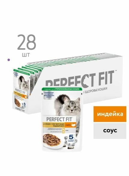 Купить Влажный корм PERFECT FIT для кошек с чувствительным пищеварением индейка в соусе 28 х 75г с доставкой по всей России. Влажный корм PERFECT FIT для кошек с чувствительным пищеварением индейка в соусе 28 х 75г: сравнение цен, характеристики, фото, актуальное наличие и цены.