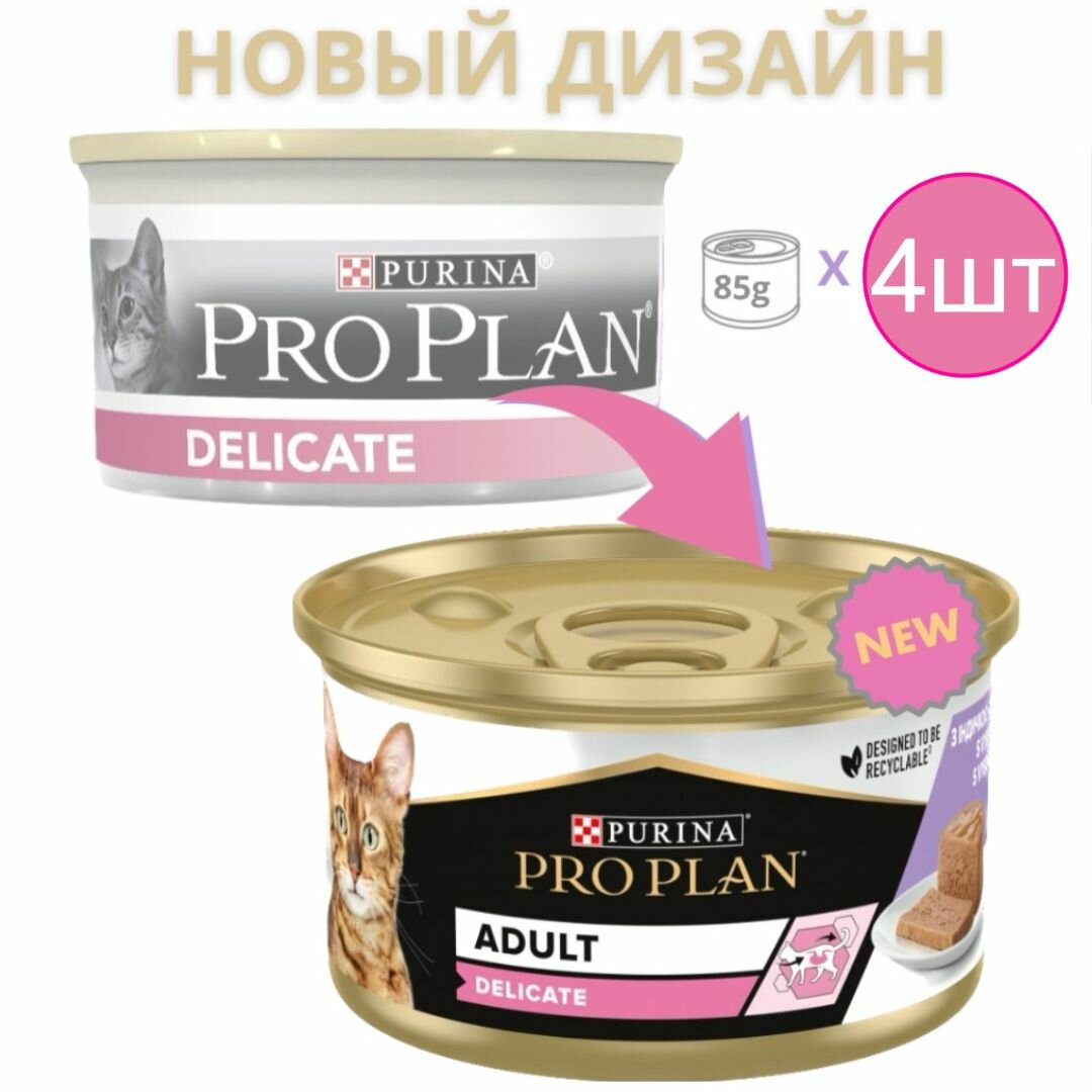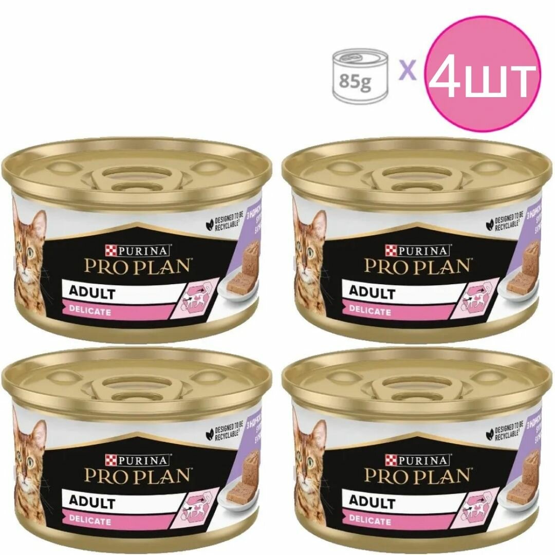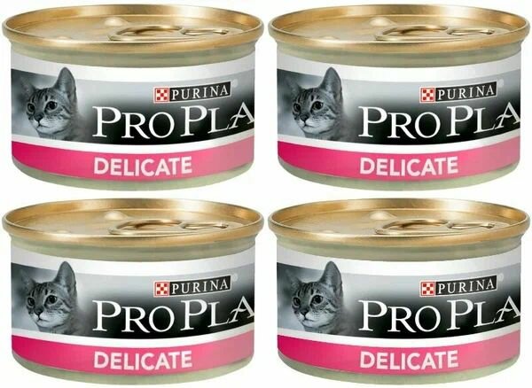 Корм для кошек Pro Plan DELICATE, паштет со вкусом индейки, для чувствительного пищеварения (4шт по 85г): сравнение цен, характеристики, фото, актуальное наличие и цены.