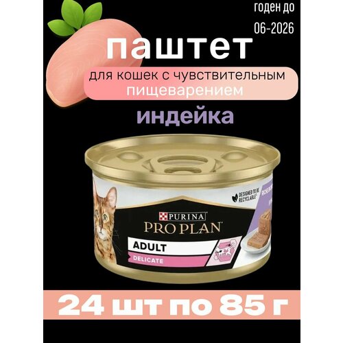 Консервированный корм Purina Pro Plan Adult Delicate (85 г) — это полнорационный влажный рацион, специально разработанный для взрослых кошек с чувствительным пищеварением и склонностью к кожным реакциям. В линейке представлены варианты с лососем, тунцом и паштетом со вкусом индейки, обеспечивающие разнообразие вкусов для привередливых питомцев.