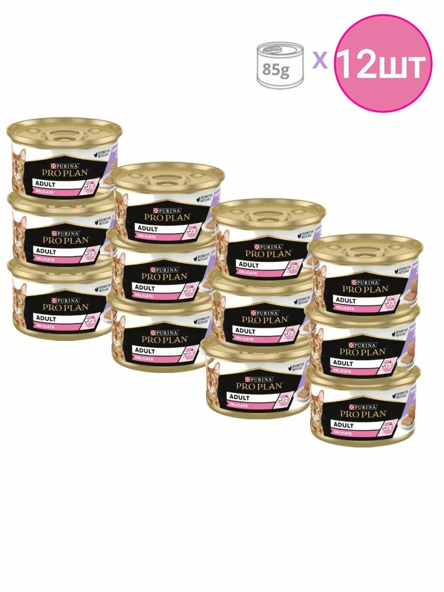 Корм для кошек Pro Plan DELICATE, паштет со вкусом индейки, для чувствительного пищеварения (12шт по 85г)