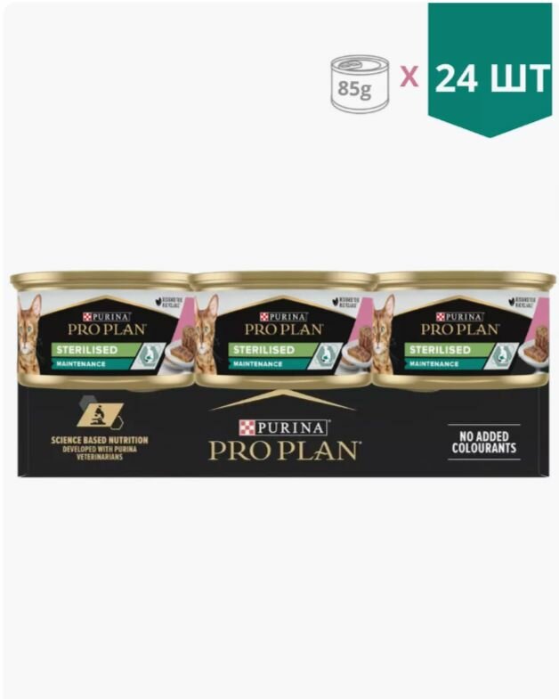 Купить Корм для кошек ProPlan STERILISED, паштет со вкусом лосося, для чувствительного пищеварения (24шт по 85г) с доставкой по всей России. Корм для кошек ProPlan STERILISED, паштет со вкусом лосося, для чувствительного пищеварения (24шт по 85г): сравнение цен, характеристики, фото, актуальное наличие и цены.