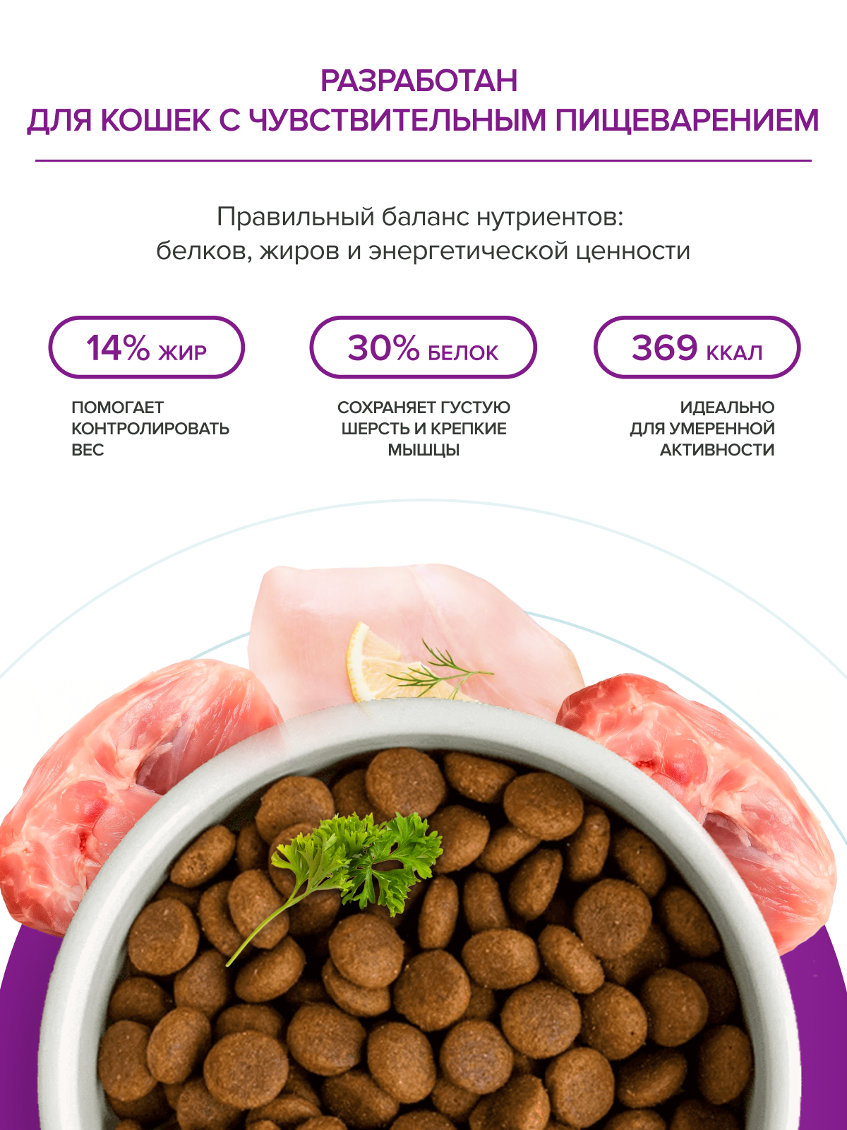 беззерновой, для беременных / кормящих кошек, для живущих в помещении, для живущих на улице, для здоровья кожи и блеска шерсти, для здоровья костей и суставов, для стерилизованных/кастрированных, при чувствительном пищеварении, профилактика избыточного веса