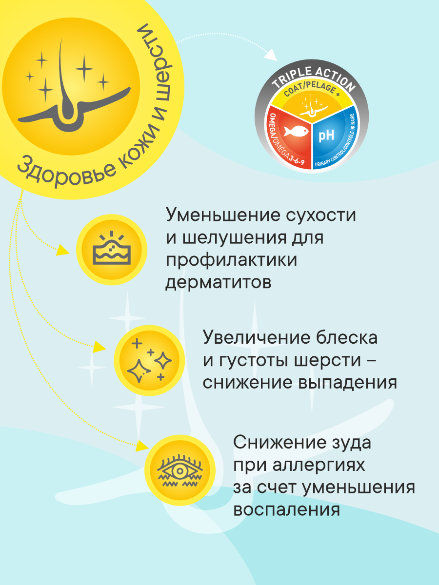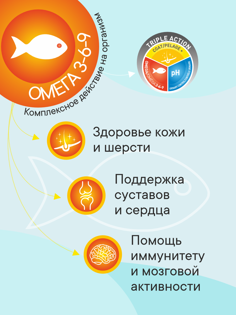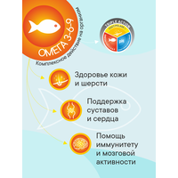Жир лосося является лучшим источником Омега 3 — 6 -9 жирных кислот, обеспечивающих здоровье кожи. Сочетание рыбного белка и рыбьего жира гарантирует здоровую и роскошную шерсть. Свежий лосось — главный ингредиент, который понравится даже самым привередливым гурманам