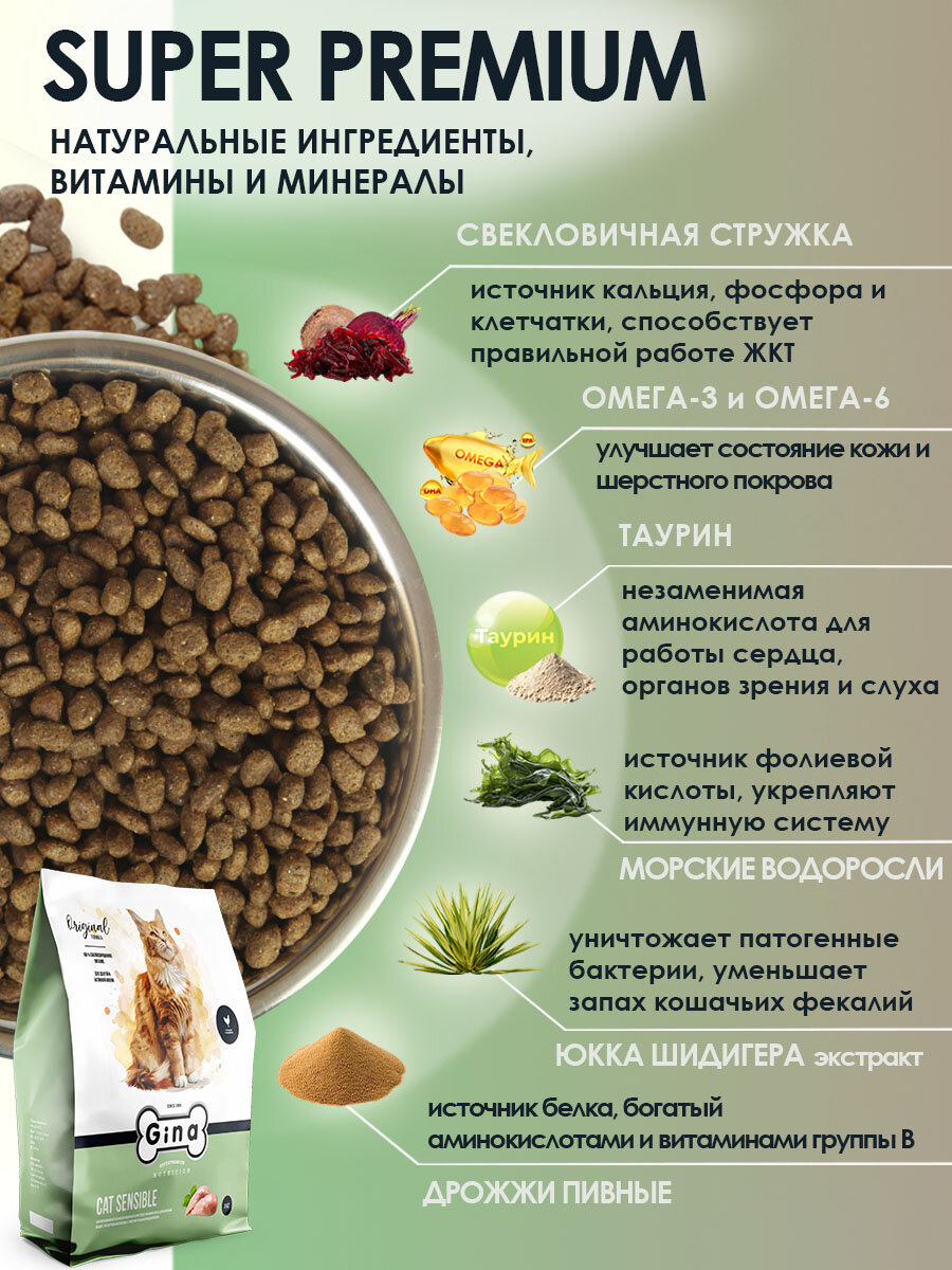 Корм для кошек сухой Gina Cat Sensible чувствительное пищеварение, цыпленок, индейка, 1 кг: сравнение цен, характеристики, фото, актуальное наличие и цены.
