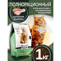 Корм для кошек сухой Gina Cat Sensible чувствительное пищеварение, цыпленок, индейка, 1 кг