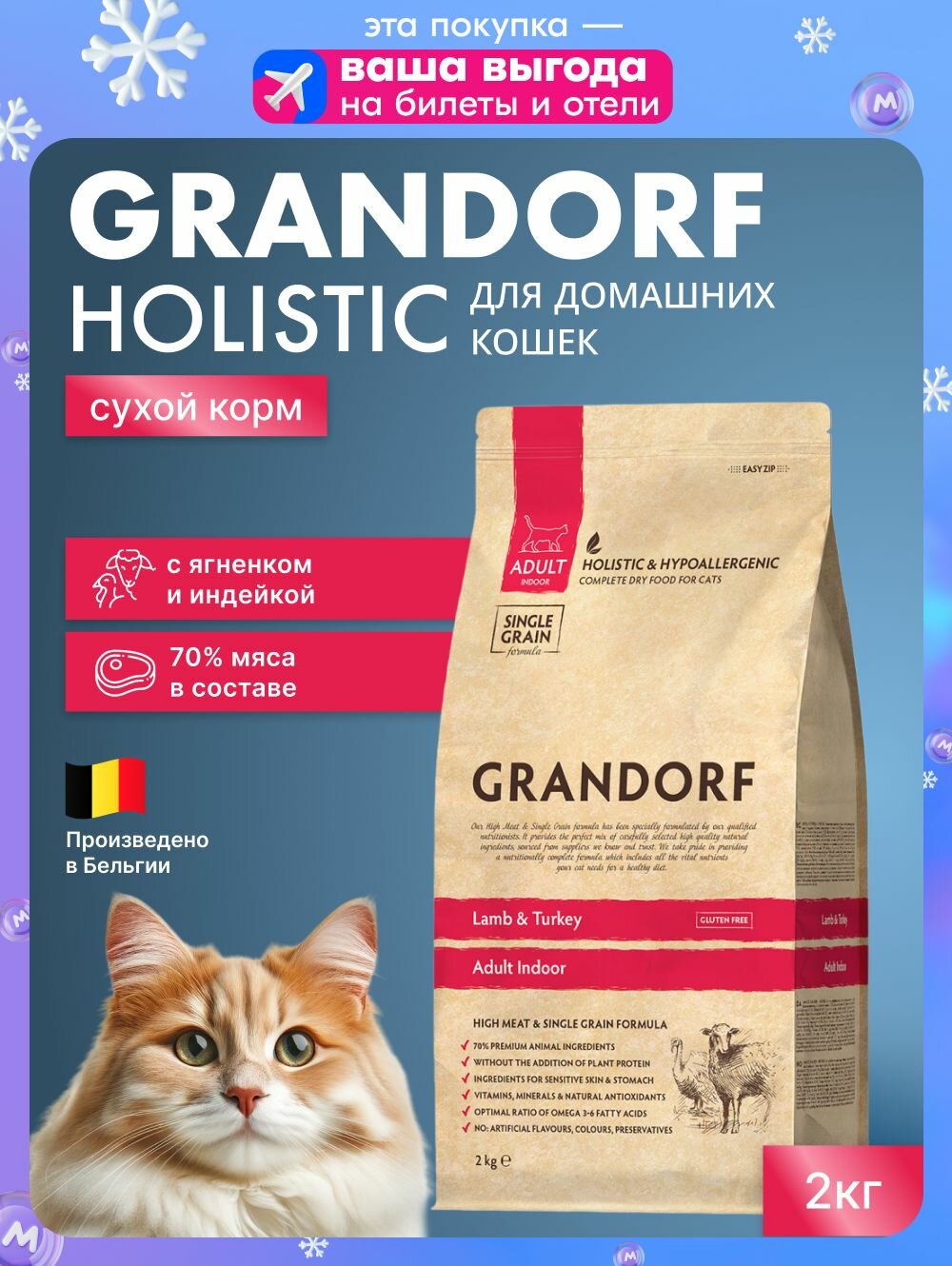 Корм для кошек сухой Grandorf для домашних кошек, с ягненком и индейкой, 2кг.: сравнение цен, характеристики, фото, актуальное наличие и цены.