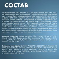 Преимущества: 70% мяса в составе корма. Только животные белки. 1000000000 КОЕ/кг живых пробиотиков. Только гипоаллергенные ингредиенты. Только мясо без субпродуктов. Комплекс хондропротекторов. Баланс соотношения Omega 6-3. Контроль уровня кислотности рН. Низкий уровень золы в составе. Натуральные антиоксиданты. Бережный способ приготовления.