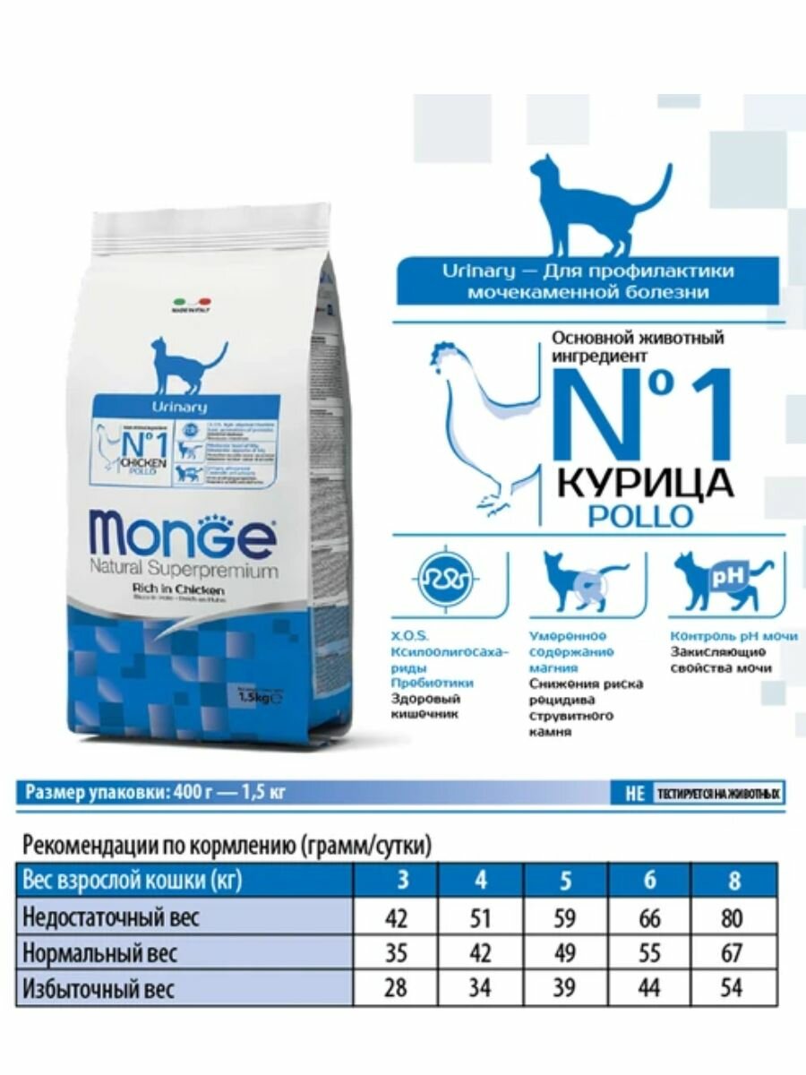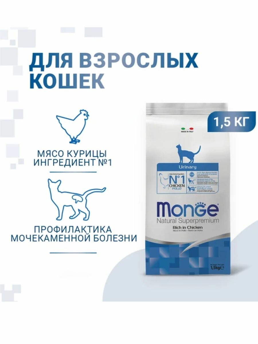 Сухой корм для кошек Monge Cat Daily Line Urinary 1,5 кг, для профилактики МКБ, с курицей: сравнение цен, характеристики, фото, актуальное наличие и цены.