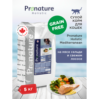 Корм для кошек сухой Pronature Holistic Mediterranea Grain Free беззерновой с лососем, 5кг: сравнение цен, характеристики, фото, актуальное наличие и цены.