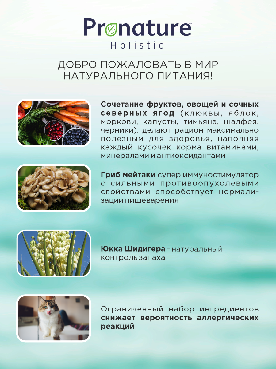 Корм для кошек сухой Pronature Holistic Nordic Grain Free беззерновой на индейке, 5кг: сравнение цен, характеристики, фото, актуальное наличие и цены.