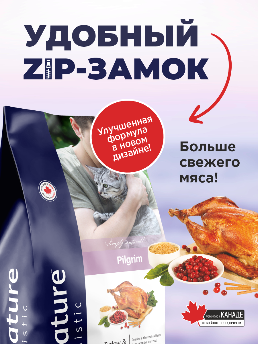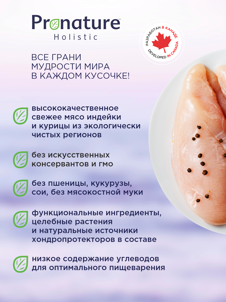 Корм для кошек сухой Pronature Holistic Pilgrim на индейке и курице с клюквой, 2кг: сравнение цен, характеристики, фото, актуальное наличие и цены.