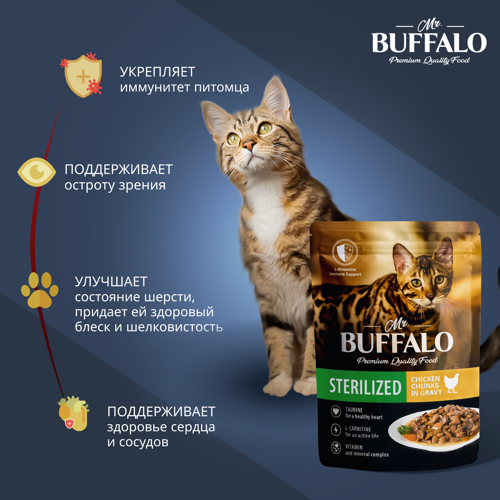 Паучи Мистер Бафало для Стерилизованных кошек Цыпленок в соусе (цена за упаковку)