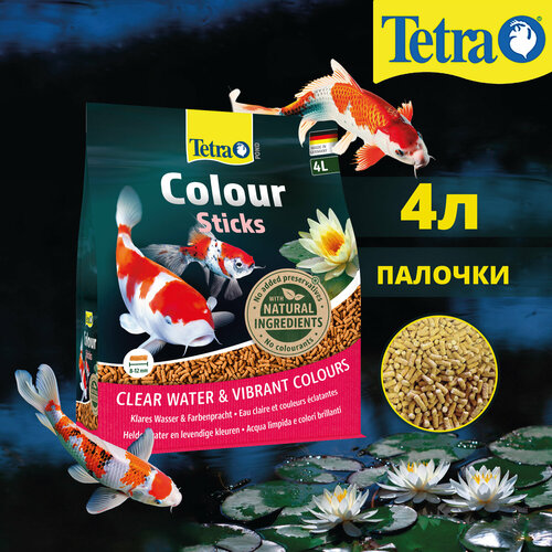 Tetra Pond Colour Sticks. Плавающий полноценный корм усиливает яркость естественной окраски прудовых рыб. Питательные вещества, минералы, микроэлементы, витамины и каротиноиды обеспечивают сбалансированное питание и усиливают яркость естественной окраски рыб. Каротиноиды способствуют естественному усилению окраски красного, желтого и оранжевого цветов Видимые результаты уже через несколько недель регулярного кормления Содержит все жизненно необходимые питательные вещества, минералы, микроэлементы и витамины, а также высококачественные каротиноиды для создания сбалансированного рациона Очень хорошо переваривается за счет высокого содержания питательных веществ. Состав Растительные продукты, Зерновые культуры, Экстракты растительного белка, Рыба и побочные рыбные продукты, Минеральные вещества, Дрожжи. Аналитический состав Сырой белок 31,0%, Сырые масла и жиры 5,0%, Сырая клетчатка 2,0%, Содержание влаги 7,0%. Добавки Витамины, Провитамины и химические вещества с аналогичным воздействием: Витамин А 28500 МЕ/кг, Витамин Д3 1780 МЕ/кг. Комбинации микроэлементов: Марганец как моногидрат сульфата марганца (II) 80 мг/кг, Цинк (сульфат цинка моногидрат) 48 мг/кг, Железо (сульфат железа (II) моногидрат) 31 мг/кг. Красители, Консерванты, Антиоксиданты.