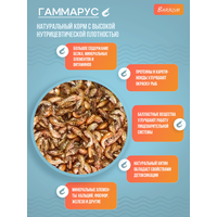 Описание Гаммарус — это натуральный корм, полученный из озерного рачка gammarus методом естественной сушки. Этот вид рачков обитает в озерах Алтайского края и всей Западной Сибири. Сушенный гаммарус является ценным белковым кормом, содержащим не менее 47% протеина, более 7% жира, каротиноиды и набор витаминов C, A, D. Состав:100% натуральный гаммарус из сибирских озер