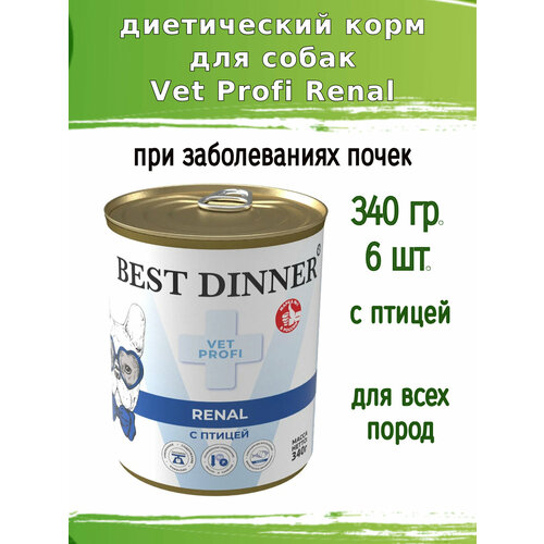 Влажный консервированный полнорационный диетический корм при заболеваниях почек у взрослых собак.